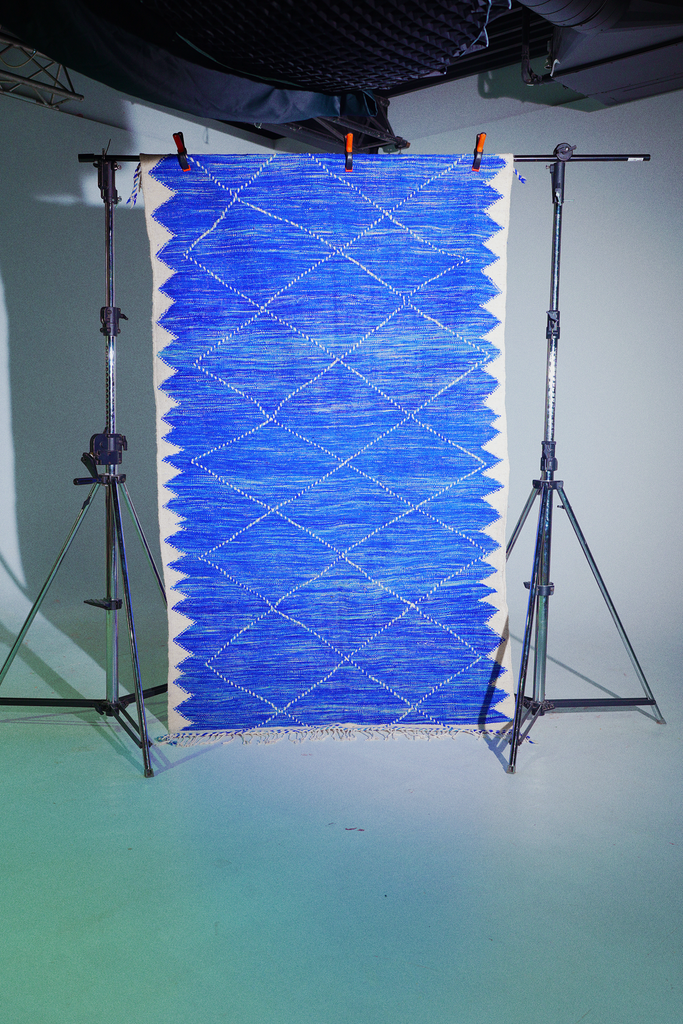 Moroccan kilim rugs of Oued Zem are woven on vertical loom according to ancestral know-how transmitted from mother to daughter. The most common symbols found on these carpets are motherhood, birth and marriage.